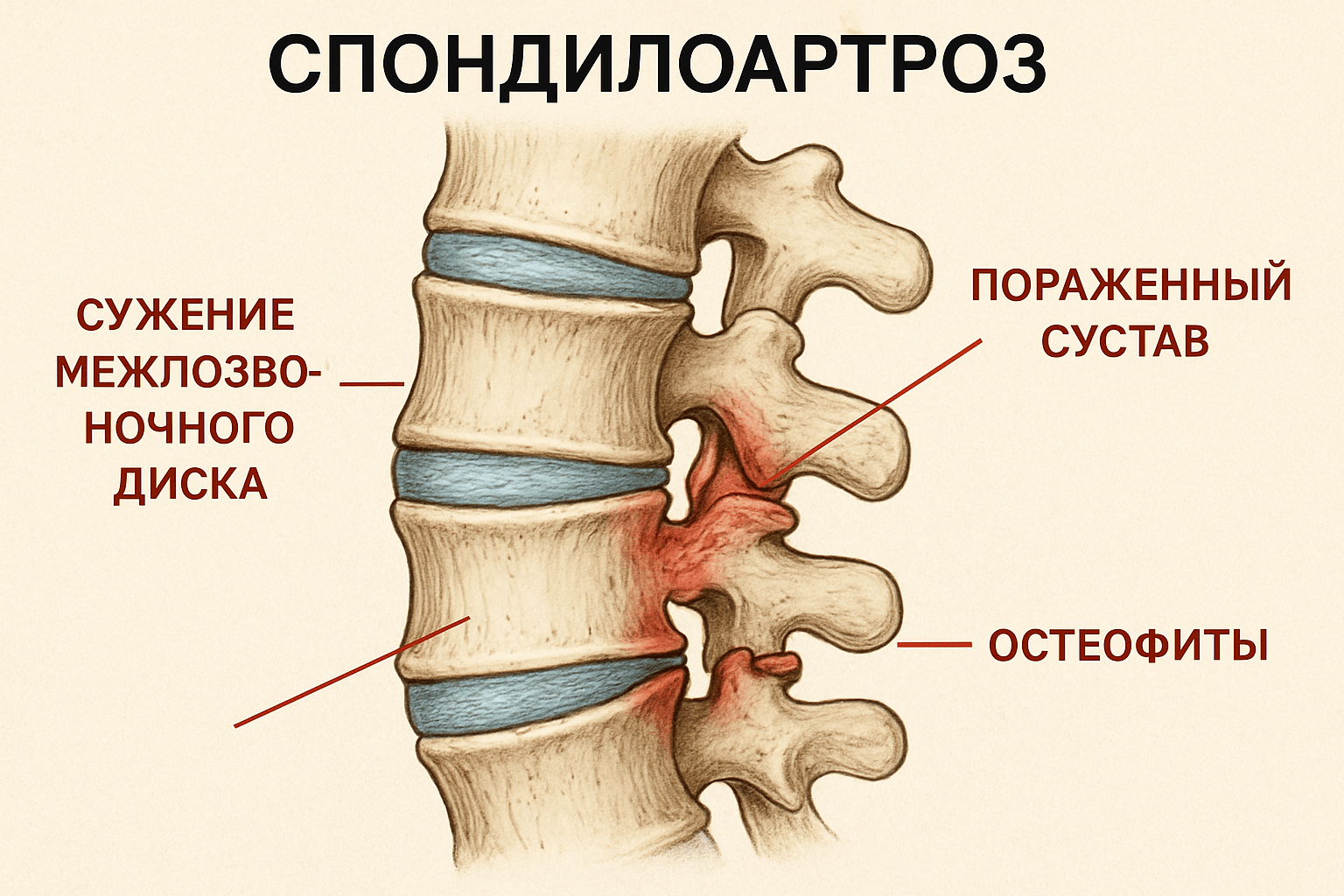 Поражает спондилоартроз людей старше 25 лет, притом 85-90% приходится группу пациентов старше 60 лет. Заболевание приобретённое, характеризуется дистрофическим хроническим повреждением фасеточных межпозвонковых суставов. У больных происходит повреждение внутрисуставного хряща, становится тоньше, уплотняется. Со временем в деструктивный процесс вовлекаются подлежащие субхондральные зоны, связки, капсула, мышцы, которые удерживают дугоотростчатые суставы.